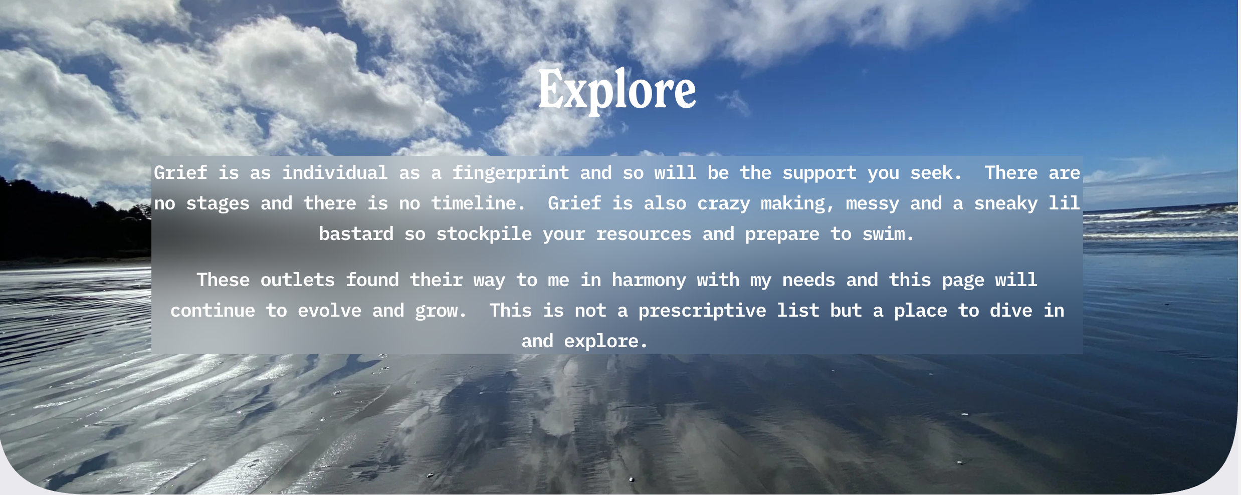 The resources at the bottom of the GRIEVE page were the most impactful to me in these first few years. Not everyone will resonate with what I have collected but hopefully they all act as a launching pad to start seeking.